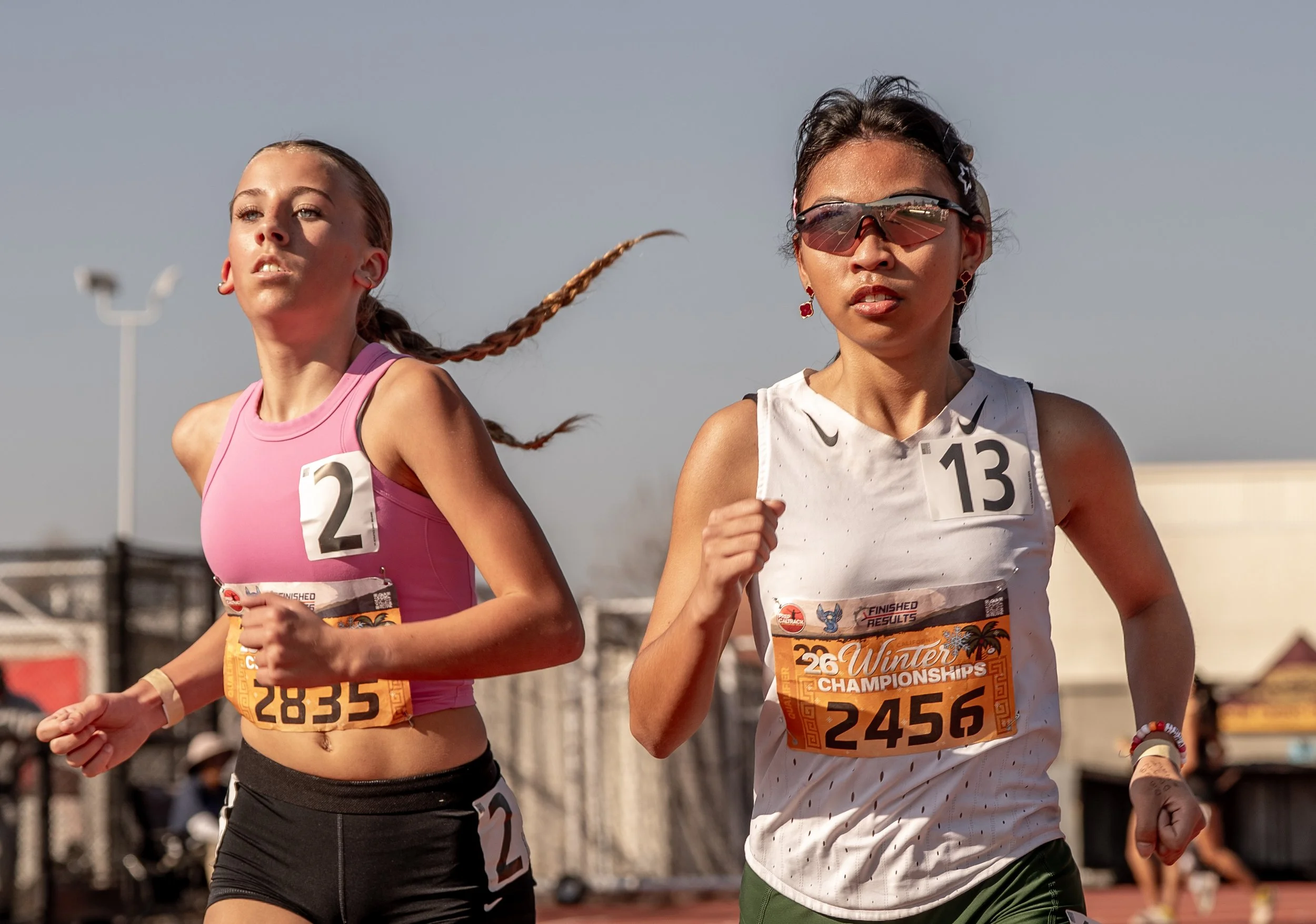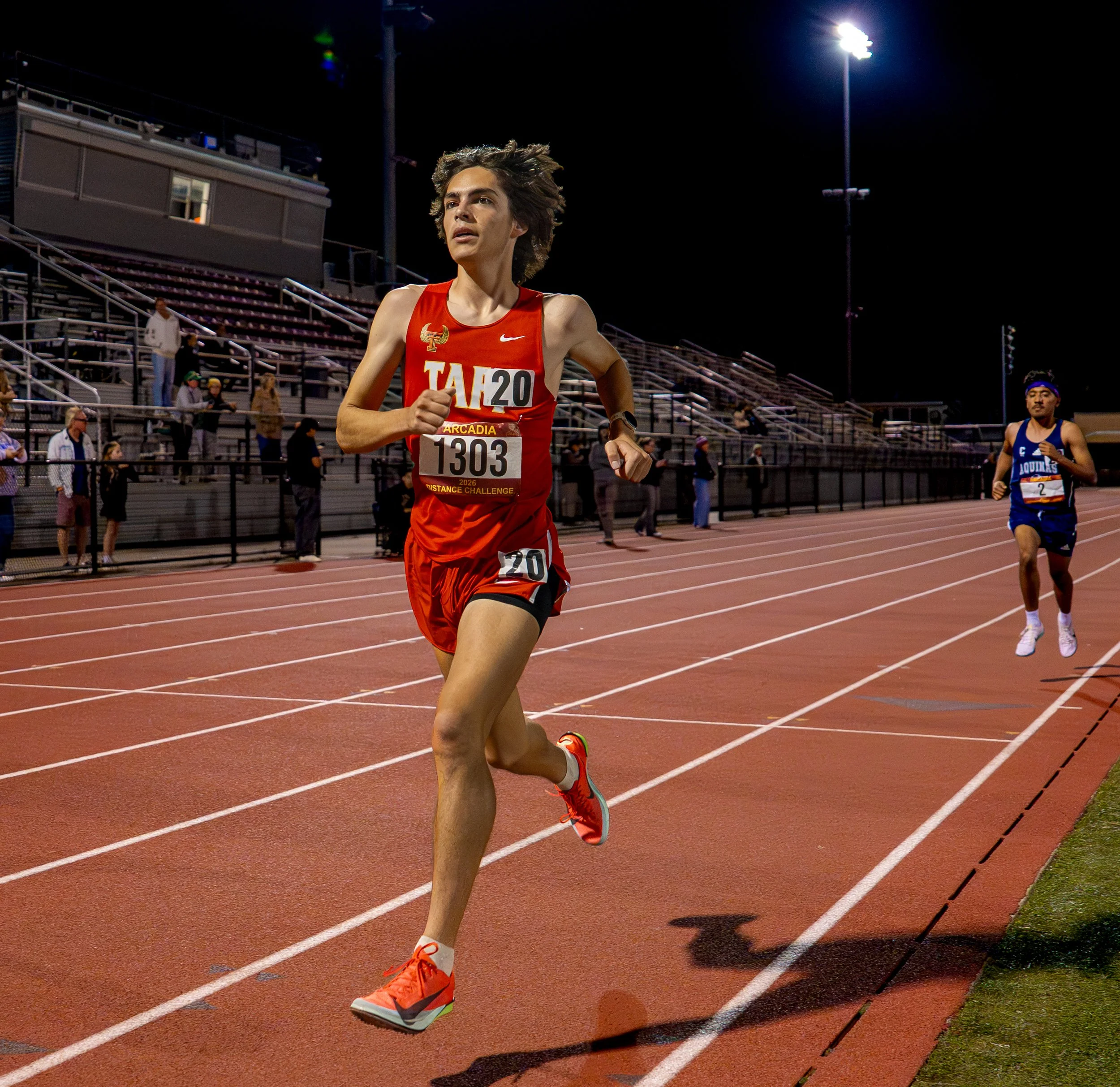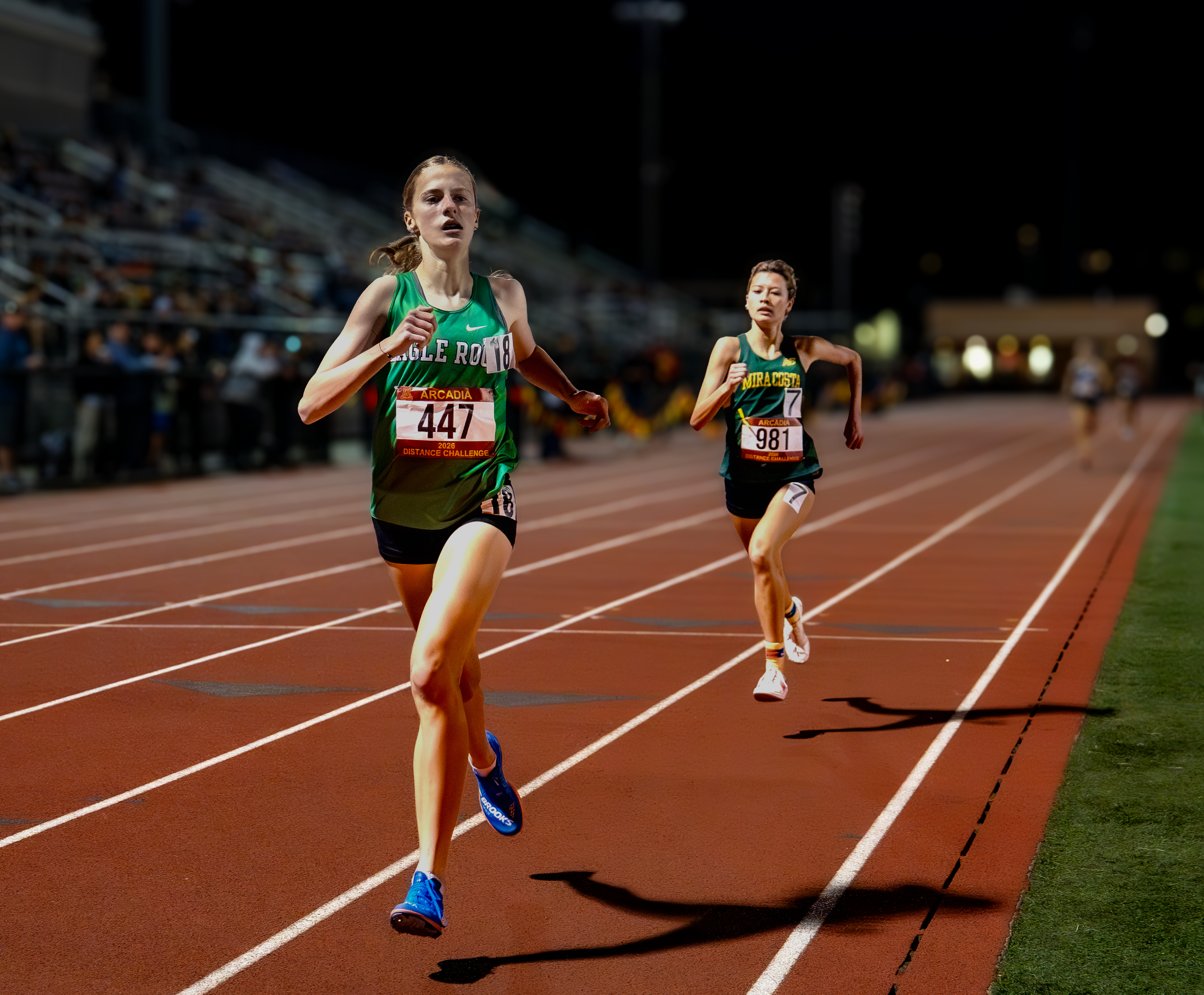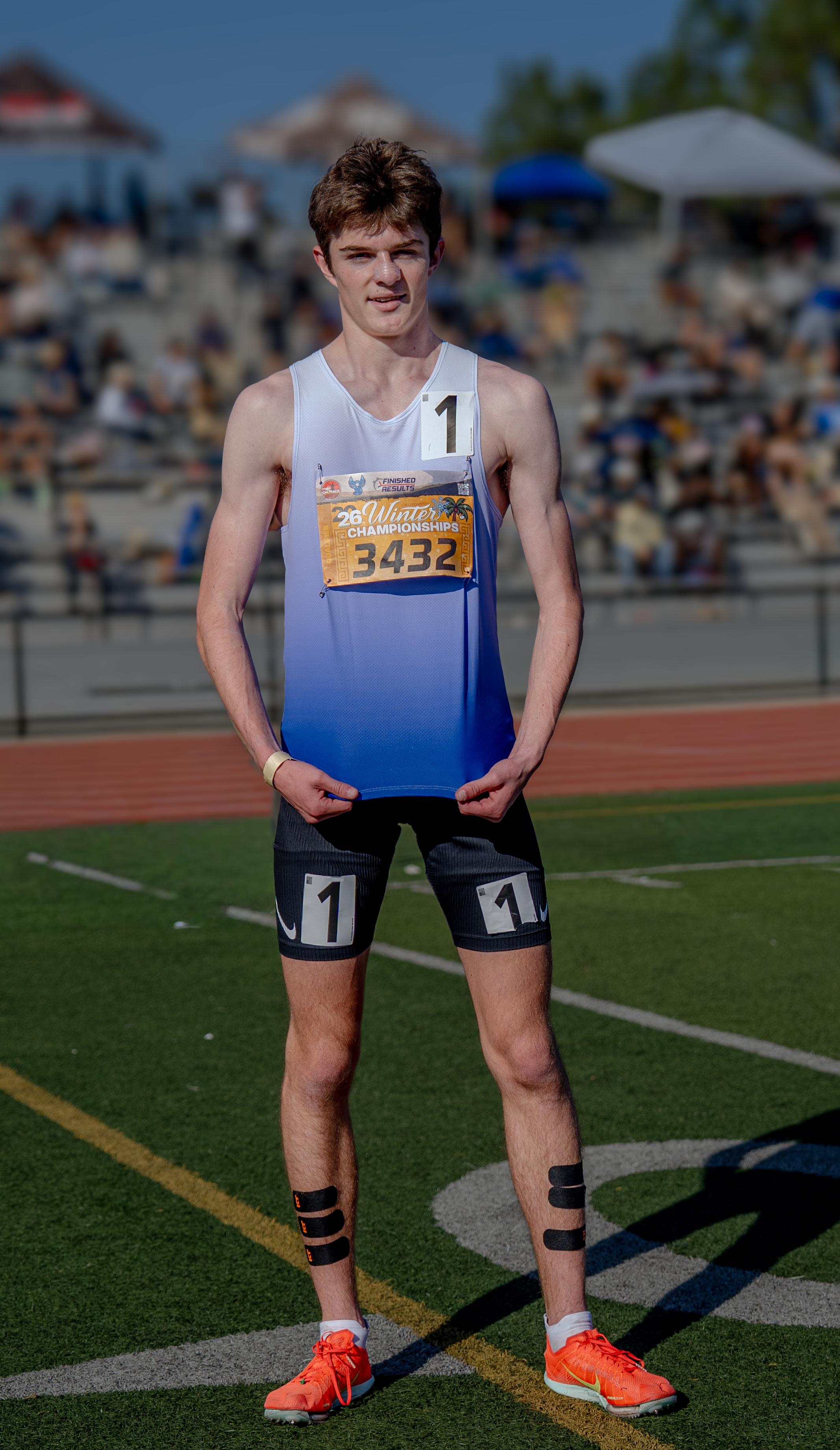 ETHAN BAROK on the final lap of the 1,500m at the Winter Championships. He closed the race with a 1:02.29 final 400m to place 6th in 3:58.74. That’s the 2nd best time in LA City history and converts to a 4:16.34 1,600m.