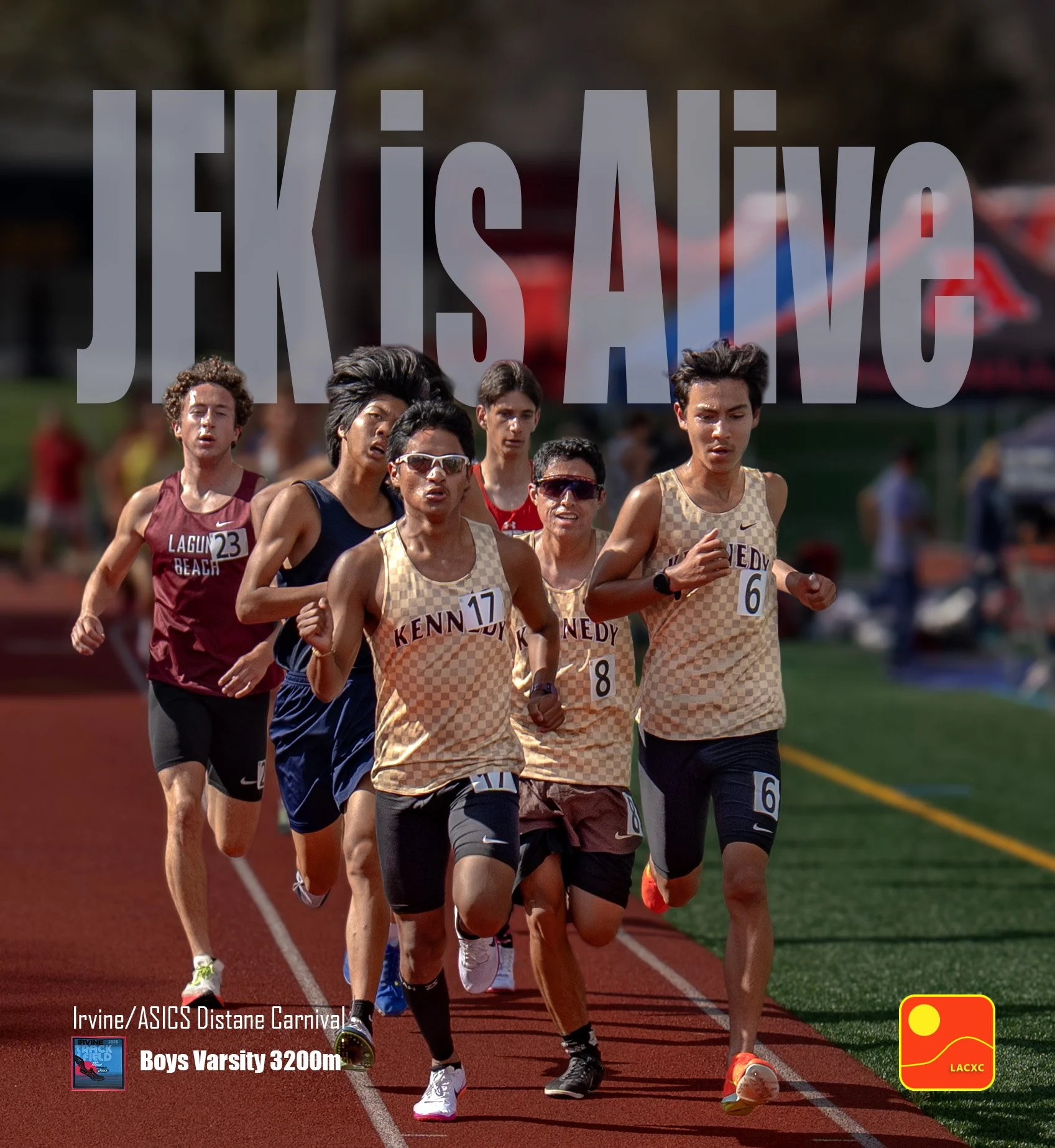 The Kennedy boys take Irvine by storm in the varsity 3200m at the Irvine/ASICS Distance Carnival.
