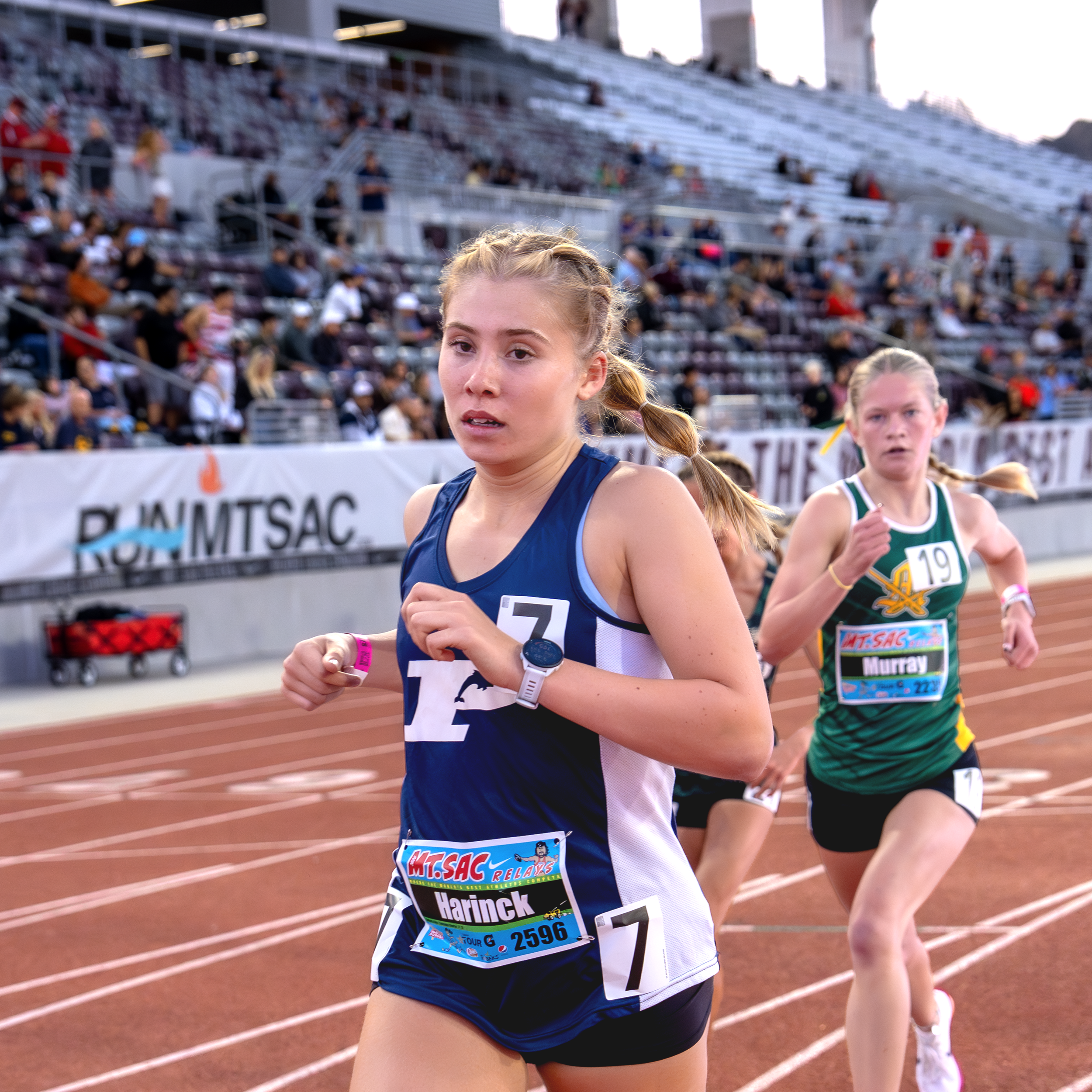 Daila Harinck finishes the Invitational-2 1,600m race at the Meet of Champions in a PB and top City time, 5:00.93