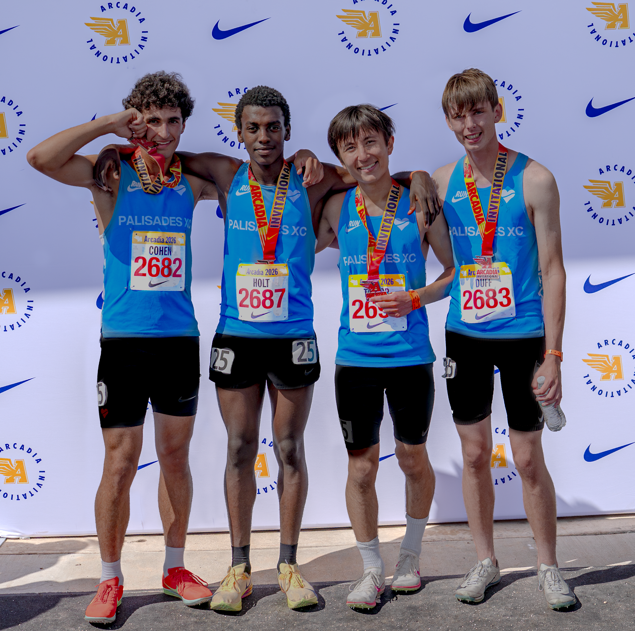 The Palisades boys set a school and City record at the Arcadia Invitational in the open DMR of 10:24.13 on Saturday afternoon. Splits for the 4 legs were 3:12, :50, 2:03, and 4:17. This team should be able to get under 10:20 if they run again this year.