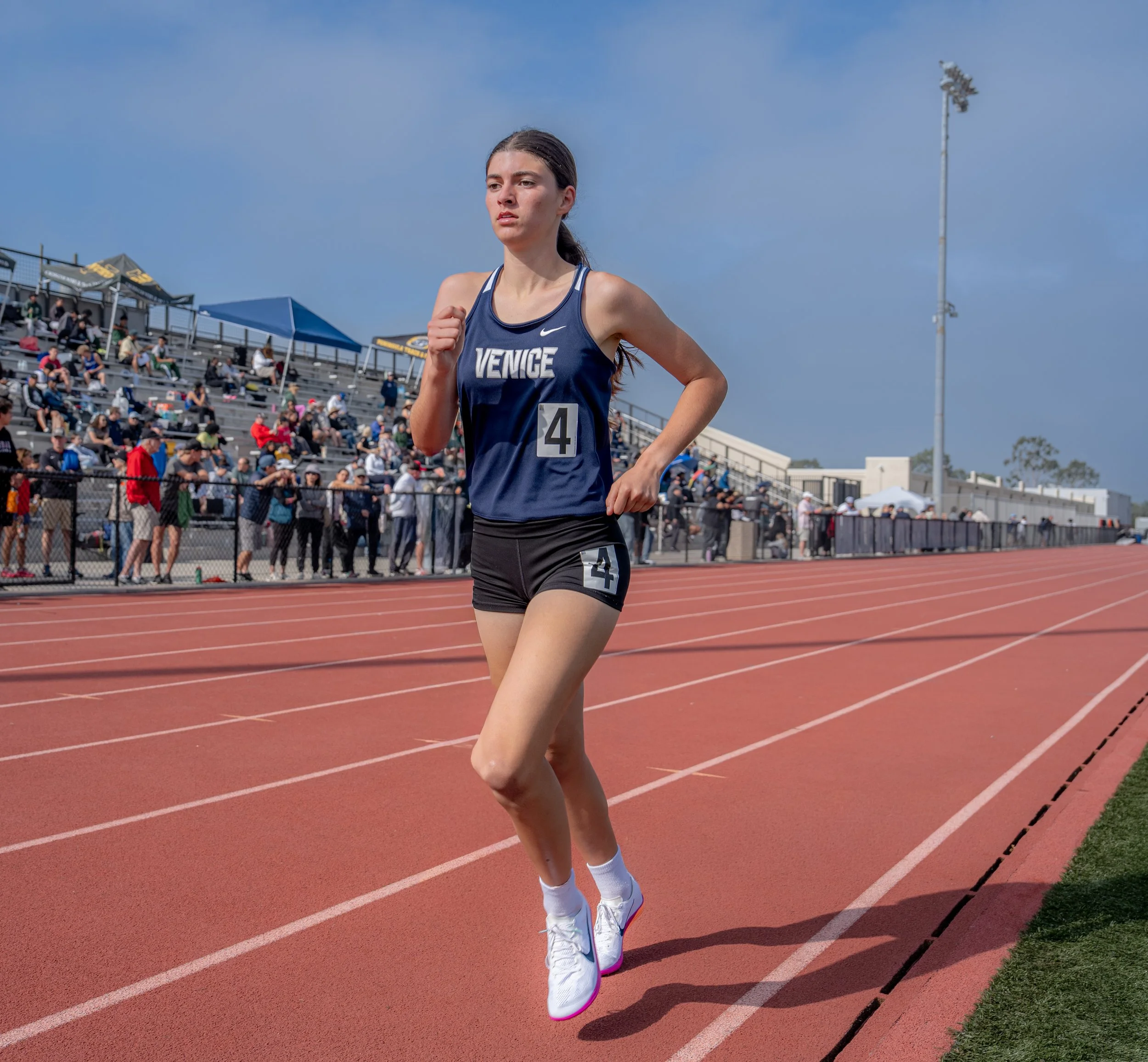 Venice senior NOGA AMIT cruises to a PB in the varsity 1600m at Beach Cities.