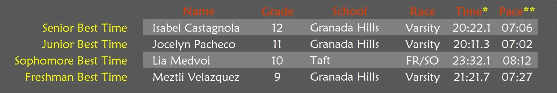 Best times by Grade